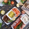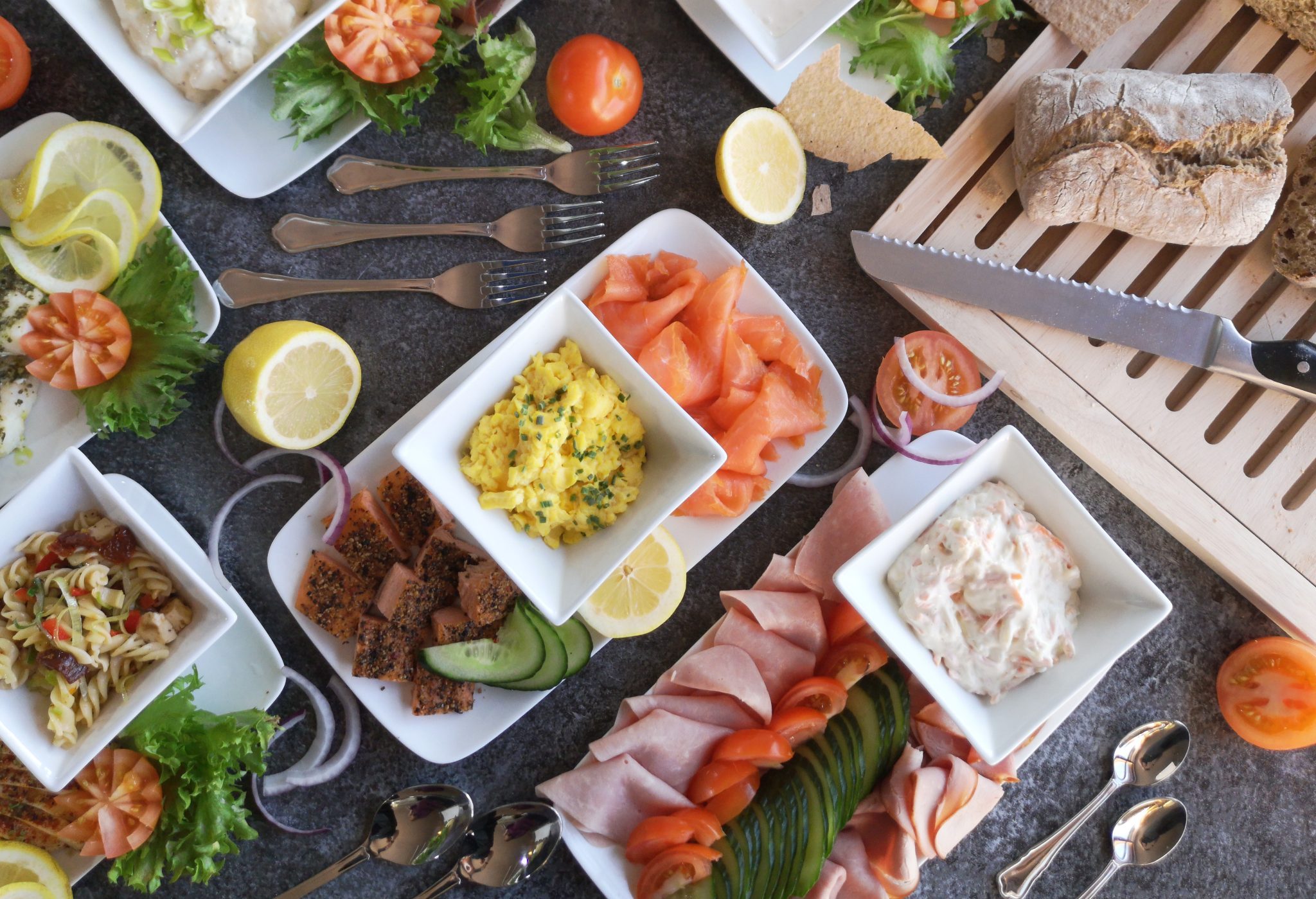 Potetsalat (M, E, SP) Italiensk salat (E, SP) Frisk salat (SE) Røkt laks (F) Eggerøre(E) Brie (M) Norzola (M)